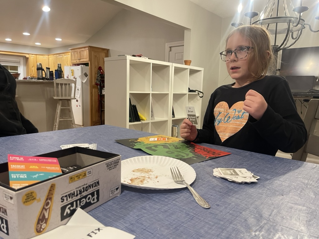 My happiest days are when it’s my turn with the kids and they come back home. Tonight we got some asian fusion and played Poetry With Neanderthals.